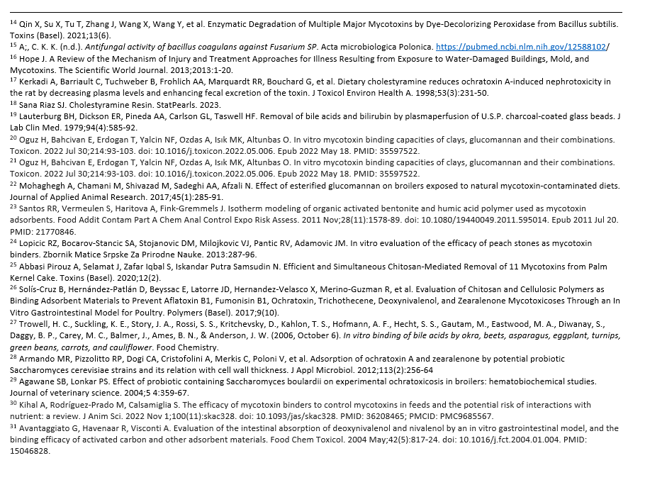 Different binders vary in their binding affinity for specific mycotoxins, which is why clinicians often use a combination approach depending on the toxin profile.