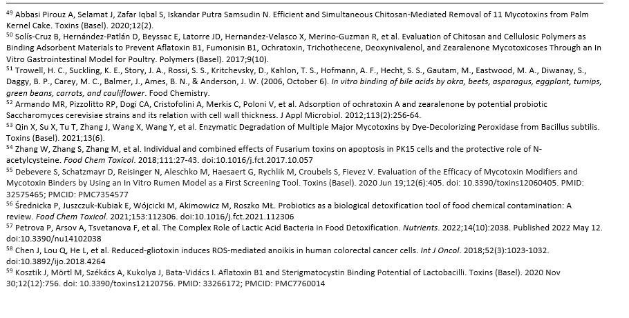 Certain probiotic species may contribute to mycotoxin detoxification through mechanisms such as: